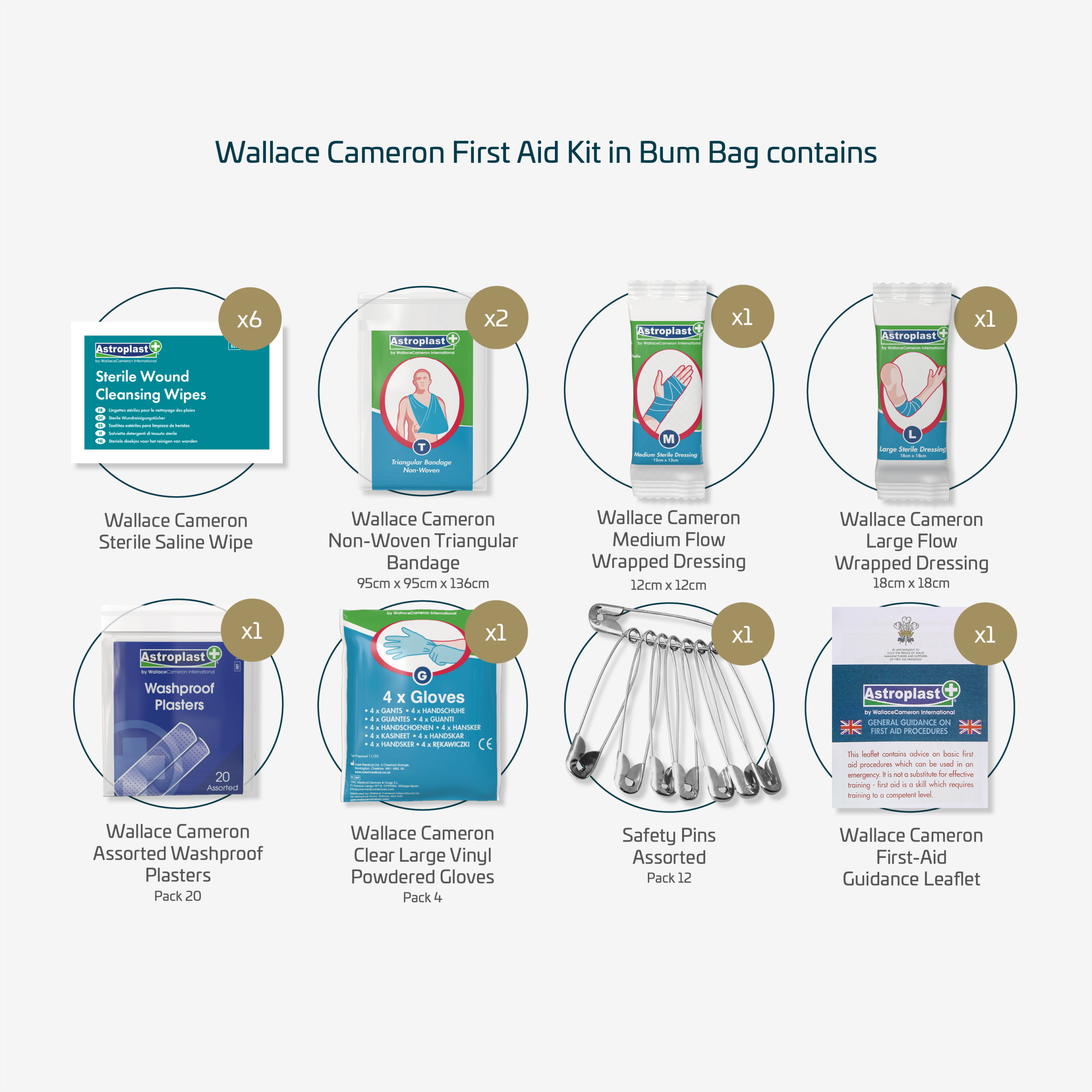 The Wallace Cameron First Aid Kit in Bum Bag is a great option for anyone who spends a lot of time outside, where there is little storage. Ideal for school trips, walks and bike rides, this first aid kit is designed to help conveniently treat all minor injuries.